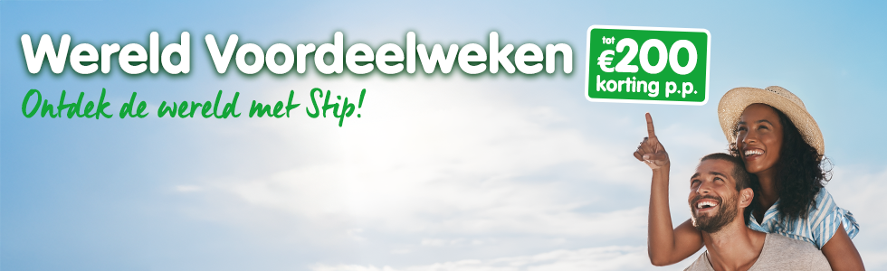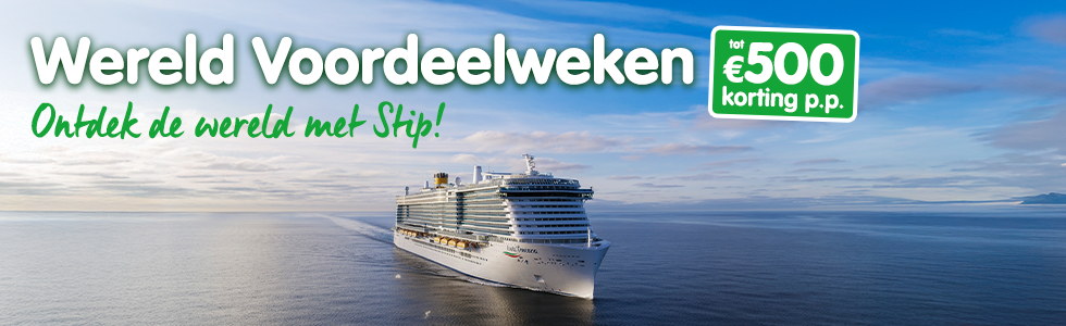 Vanaf 25 februari 2026 heeft Stip Reizen de “Wereld voordeelweken” met mooie kortingen tot maar liefst € 500,- per persoon op cruises en tot € 200,- per persoon op rondreizen! Tijdens deze actie is er een wisselend aanbod van geselecteerde cruises & rondreizen. Iedere week wordt het aanbod vernieuwd. Mis je kans dus niet en boek die ene mooie reis zodra je hem in de actie ziet!