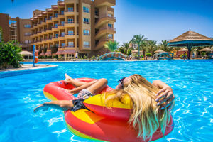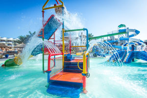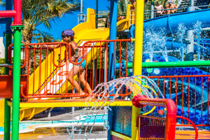 - Verschillende zwembaden met glijbanen