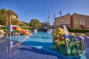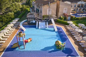 - Groot tuin- en zwembadgebied met piratenschip voor kinderen